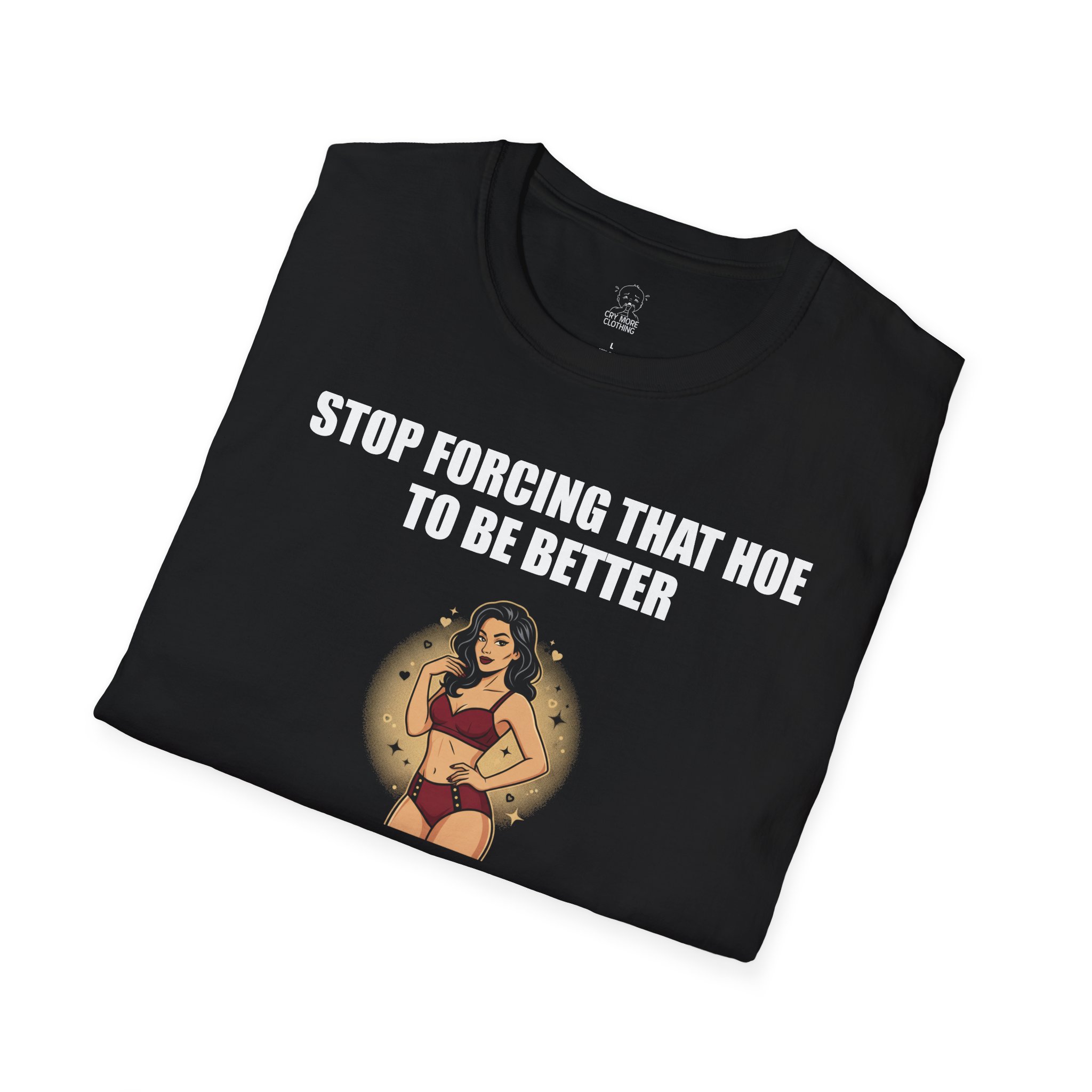This lightweight crew tee carries a bold, tongue-in-cheek graphic that lands with confident humor. The vintage pin-up illustration and strong statement sit centered on a soft, smooth black fabric that drapes cleanly over the body. It’s the kind of shirt someone reaches for when they want to say something cheeky without shouting — casual, comfortable, and a little mischievous. Wear it out with denim and boots or layered under a jacket for late-night hangs and backyard barbecues. The breathable cotton keeps you comfortable all day, while the durable print stays vivid through repeated washes.