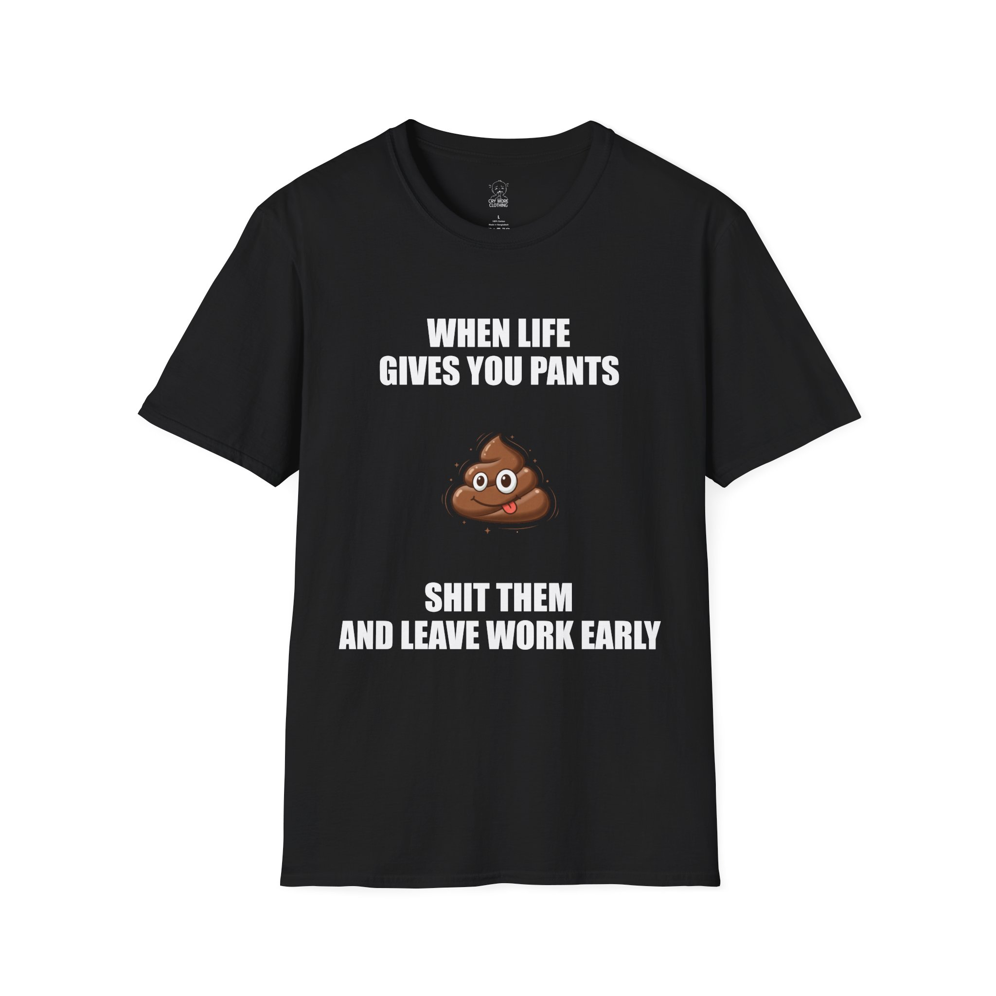 Simple, sharp, and unapologetically funny — this soft cotton tee speaks for the person who prefers honesty with a wink. The lightweight ring-spun cotton drapes cleanly while the crew neckline and classic fit keep the silhouette familiar and easy to layer. Bold white text sits above a playful emoji-style illustration, creating a punchy contrast on the black fabric that reads from across the room. Wear it to break the ice, shrug off a rough day, or make coworkers laugh (or groan). The breathable knit and tear-away label keep it comfortable all day, and the sturdy ribbed collar and taped shoulders mean this shirt holds its shape wash after wash.